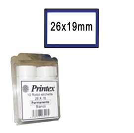 PACK 10 ROTOLI 600 ETICH. 26x19mm BIANCO PERM. CORNICE BLU Printex